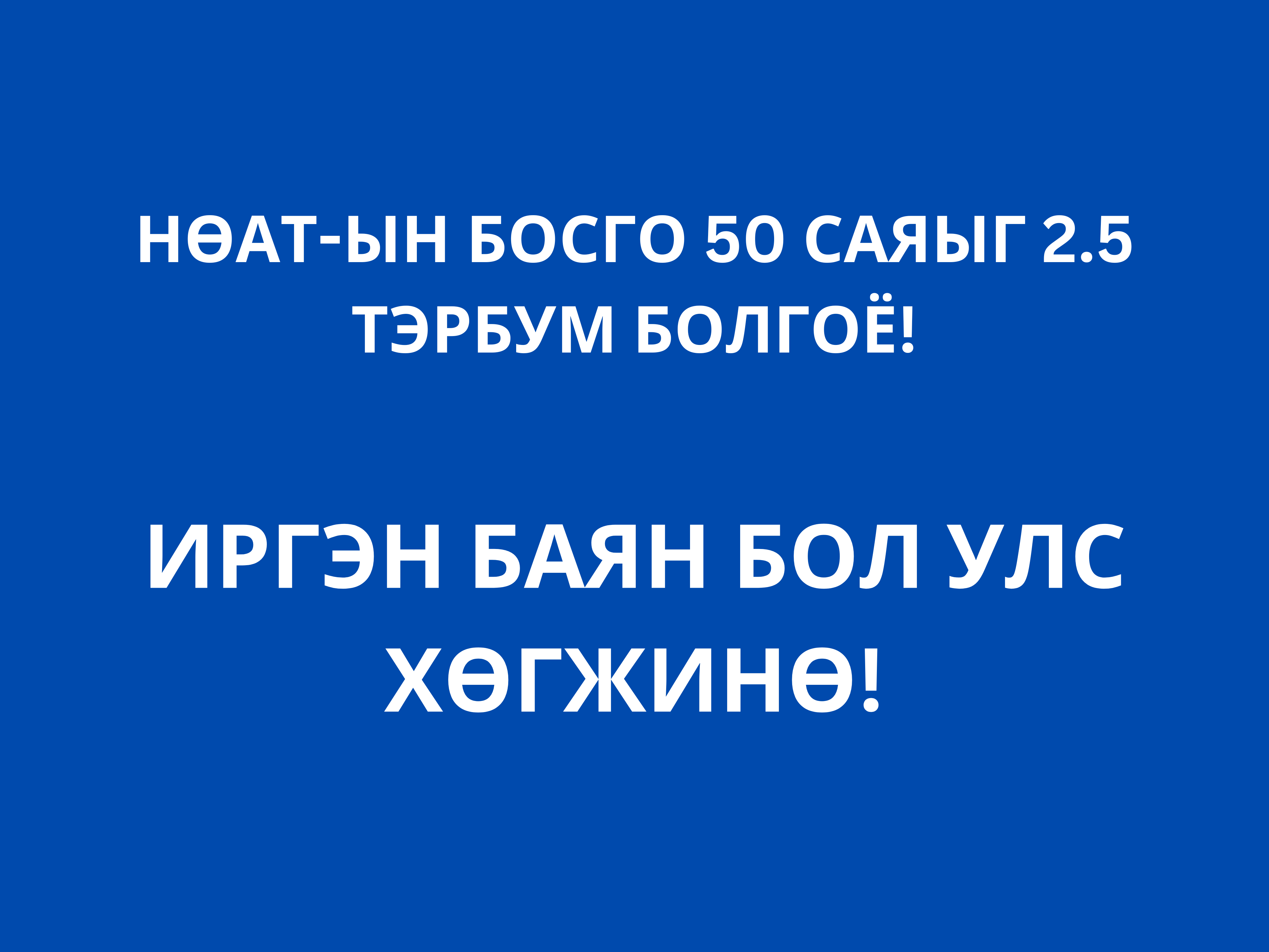 НӨАТ-ын босго 50 саяыг 2.5 тэрбум болгож өсгөх, иргэн баян бол улс хөгжинө!
